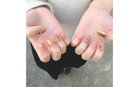当店は、個室での完全予約制のネイルサロンです。 安心してネイルを楽しんでいただくために、自爪への負担が少ない商材を厳選し、次回ご来店の際はベースジェルを残す技法を施すことも可能です。 約100色以上のカラーを整えミラーネイル・フラッシュネイル等の特殊な物もご用意していますので、お気軽にお越しください。 ※現在準備中です。